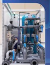Myrtha Shark est un module de filtration haute performance et compact, utilisant des filtres à perlite, spécialement conçu pour les locaux techniques de petite taille.