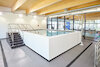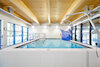 L'Aquamore Spinea comprend également un bassin de physiothérapie dédié à la rééducation. Le bassin est équipé du fond exclusif Myrtha Soft Floor qui amortit les chocs et constitue le choix idéal pour un bassin de rééducation. L'eau plus chaude de ce bassin la rend également idéale pour les cours aquatiques néonatals et prénatals. Outre des caractéristiques structurelles similaires et la technologie Myrtha que l'on retrouve dans les deux autres bassins, ce bassin de rééducation est également équipé de sièges qui facilitent l'entrée dans l'eau pour les personnes à mobilité réduite. Ce bassin offre également des jets d'hydromassage pour les muscles des membres inférieurs et dispose d'un ancrage pour les tubes chirurgicaux qui peut être utile pour divers types d'exercices aquatiques. Une autre particularité du projet est le bord de la piscine, qui a été recouvert de la membrane Touch de Myrtha Pools. Cette surface exclusive est antidérapante et confortable, ce qui contribue à garantir la sécurité même après la fin de l'exercice ou du programme de rééducation.