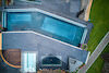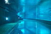 Elegant, high-quality finishes, a staircase for easy access to the water and a lighting system complete the pool accessories. The pool was then finished with an elegant black stone surround, which not only provides an interesting contrast to the transparent walls, but also helps to keep the water temperature warmer on sunny days.