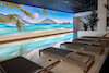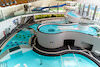 The relaxation and pool bar area comprises two pools. One has been equipped with infinity loungers and an immersive projector that recreates relaxing environments. The other pool is built around the bar area and is usable directly from stools installed in the water.