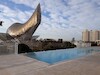 Designed in bronze coloured steel, it becomes even more prominent at sunset, when amazing light effects take place as the installation reflects the sunrays. The water area that reflects onto this extraordinary artwork is equipped with a waterfall that creates the illusion of an infinity pool. Here guests can enjoy moments of relaxation in one of the most exclusive areas of Barcelona.