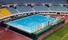The Municipality of Wien was informed about Myrtha Pools’ skills in building temporary facilities for aquatics international events, therefore appointed the company to build a water-polo pool on the athletics track of the Prater Stadion, which is equipped with 50,000 seatings.